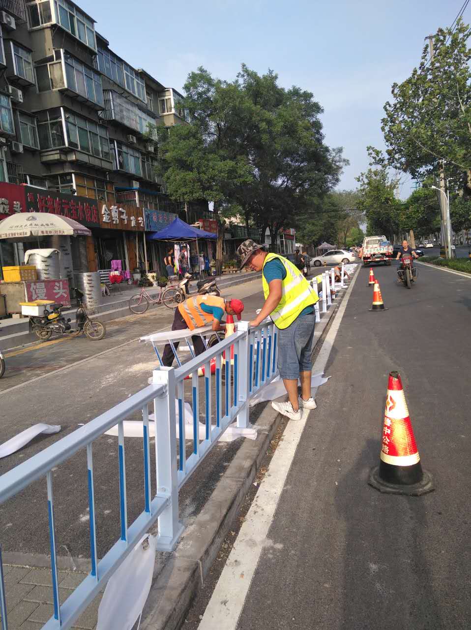 路面工程分公司承接的人民路公交隔離護欄目前正在進行安裝工作,人民路公交隔離護欄共計長度5030米,現(xiàn)已完成安裝3600米,項目部積極投入人員和機械力量,現(xiàn)場人員加班加點,保證以最快的速度完成。根據(jù)項目部計劃7月15日完成人民路公交護欄的安裝工作。新型公交護欄采用白色底漆,豎桿加以藍色反光噴漆,立柱安裝太陽能柱帽,新型公交護欄的安裝已成為人民路上一道亮麗的風景線,實現(xiàn)了公交車與非機動車的隔離作用,既保障了行車安全又改善了人民路交通擁擠的狀況。