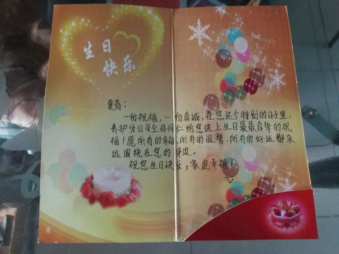我自參加工作以來第一次去到公路施工第一線,常駐工地才切身體會到了身在工地不能按時回家的辛苦。早在6月份時,養(yǎng)護分公司辦公室人員就提前詢問大家的生日,我們也因此早知道公司要給大伙祝賀生日,可當我真正收到賀卡、蛋糕、禮物的時候,心里還是非常感動,心情非常激動,由衷的感謝公司各位領導的關愛。