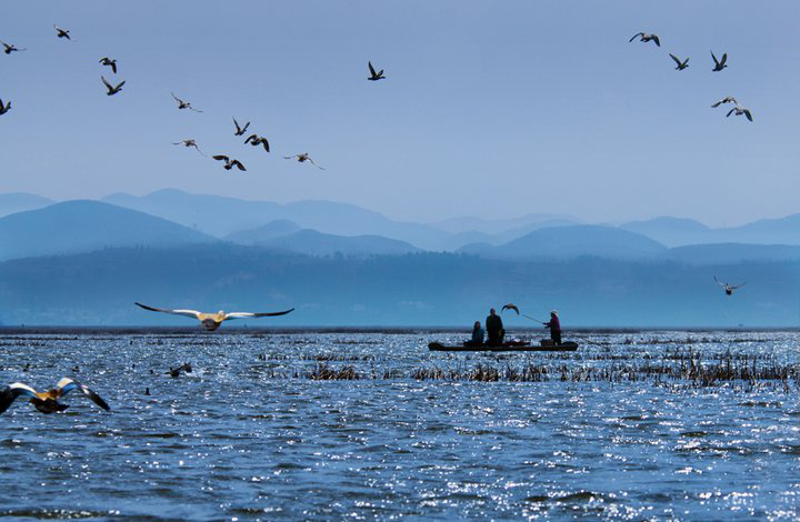 在邊臨威寧縣城的西南部有個魅力的天然湖泊——草海。草海是一個完整、典型的高原濕地生態(tài)系統(tǒng),是貴州最大的高原天然淡水湖泊,是黑頸鶴、水鳳凰、白鷺、野鴨、等200多種鳥類的重要越冬地和遷徙中轉站,每逢秋季北方降溫、寒冷襲來,各種候鳥不遠萬里飛到草海躲避寒冷的冬天。游客們乘坐小船在當地向導的帶領下游至草海的深處,和候鳥們零距離的接觸,使人有一種身處仙境的感覺。