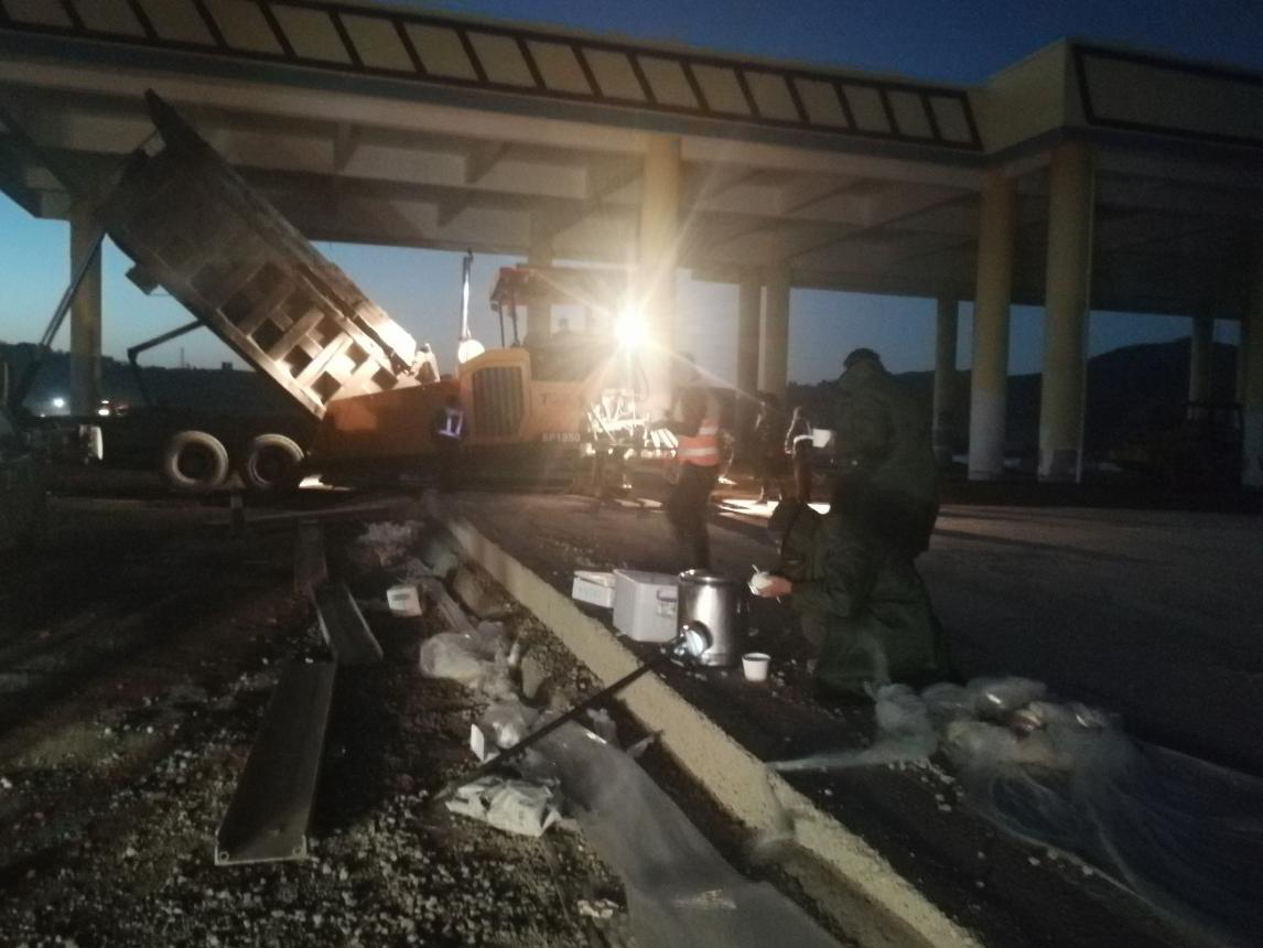 最近忙于公司的績效工作的推進(jìn),很少去工地現(xiàn)場,今晚到工地去設(shè)置標(biāo)志牌,順便跟著送飯的車輛到工地去拍下照片。到工地后先跟大家一起在施工現(xiàn)場吃飯,當(dāng)凜冽的冷風(fēng)穿透衣服吹在身上,才突然發(fā)現(xiàn),當(dāng)?shù)氐臍夂驐l件已經(jīng)變得如此的惡劣?,F(xiàn)場施工人員近一周都是凌晨兩三點(diǎn)回到項(xiàng)目部,天還沒亮就又出發(fā)了,我問他們這樣的狀態(tài)還要持續(xù)多久,“至少還得一個月”?,F(xiàn)在基層隊(duì)伍正在進(jìn)行水穩(wěn)基層的鋪筑施工,距離項(xiàng)目部25公里,飯菜送到工地,冷風(fēng)一吹,飯菜就只有余溫了,施工員們輪流過來吃飯,大家吃的匆忙,飯間簡單交流過工作后就都拿起儀器回到工作中。在刺骨的冷風(fēng)中,看著兄弟們走遠(yuǎn)的背影,心里對他們充滿佩服,心里想起一句詩:千磨萬擊還堅(jiān)勁,任爾東西南北風(fēng)!