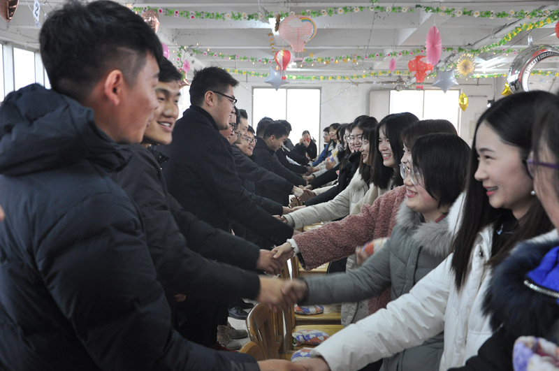 “自動工作”是魯中公路年輕人必備的職業(yè)素養(yǎng),“主動爭取愛情”則是公司對年輕人在生活中同樣必須擁有“自信與擔當”的基本要求。本屆聯誼會為年輕人量身打造的第一個團隊游戲就是“我要認識你”,通過簡單的介紹,記住彼此的姓名,全組成員協(xié)同在紙上寫下大家選出隊員姓名。笑著、鬧著、打趣著,紙上躍然而出的是已經熟悉的名字。