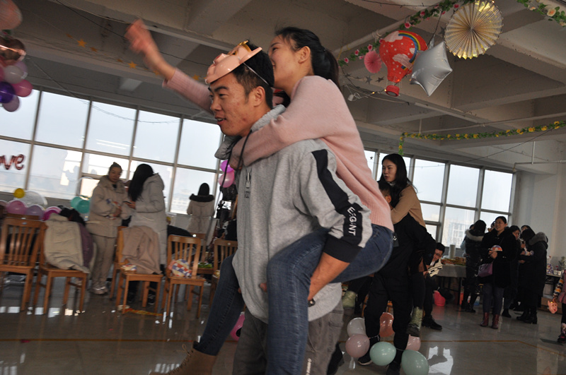 通過“認識你”,展現出青年人團結協(xié)作、擔當果敢,和快速掌握技巧的大智慧。接下來則是為契合豬年諸事順利、心想事成,極力展現男孩子們個人魅力而設計的“八戒闖關”游戲。男生們紛紛帶上八戒面具,背著女孩子斬關奪隘,緊張火熱的游戲,引來大家喝彩、尖叫聲不斷。一個堅毅而踏實的臂膀,不僅僅能壘砌通天下的路,更能為心中的她擎一片天,守護一生的幸福。