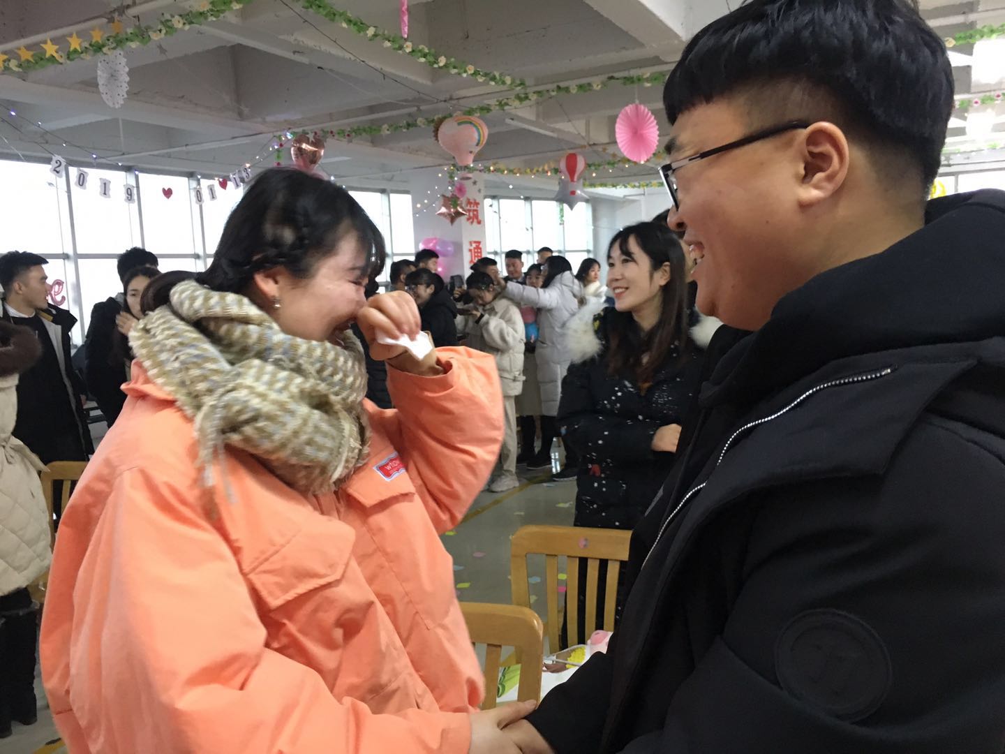 從陌生到熟悉,從開始接過臘八粥都臉紅,到愿意貼近你的脊背跟你匹馬闖天涯,這個冬日的下午變得幸福又甜蜜。由此特別設置的“找到你”游戲環(huán)節(jié)卻變得簡單起來,大屏幕上不斷滾動男生的照片,隨機只有一秒的定格,當男生還不確定剛才閃現的是不是自己的時候,女生早已穿過人群歡呼雀躍著拉住了他的手,并喊出了他的名字。曾經預期找不出時的臺本完全用不上了,因為愛情、友情已在這群年輕人之間生了根、發(fā)了芽。