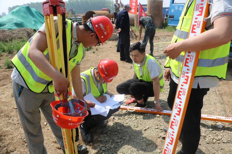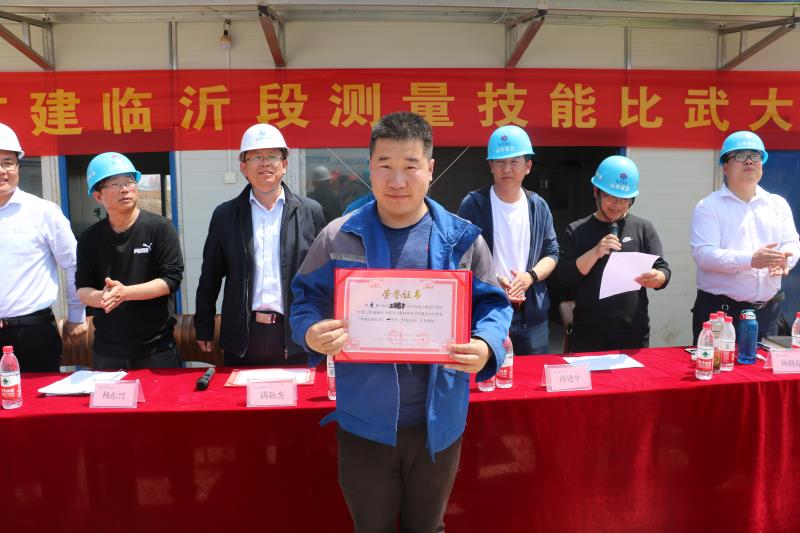 幕后英雄,臺前競技。2019年4月18日,在京滬臨沂項目辦、總監(jiān)辦組織開展“測量技能大比武”活動中,我標段李丙廣、王鵬飛、劉照輝、謝士瑞的代表隊以速度第一,測量精度第一,卷面整潔準確度第一,綜合評比第一的驕人成績勇奪第一名。