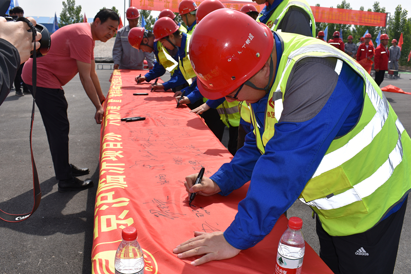 為落實(shí)全省“擔(dān)當(dāng)作為、狠抓落實(shí)”動(dòng)員大會(huì)精神,推動(dòng)“當(dāng)好主力軍、聚力新動(dòng)能、建功新時(shí)代”勞動(dòng)競(jìng)賽暨新增省級(jí)示范性重點(diǎn)工程勞動(dòng)競(jìng)賽深入開(kāi)展,激勵(lì)廣大黨員和團(tuán)員青年在工作中充分發(fā)揮生力軍和突擊隊(duì)作用,加快推進(jìn)工程建設(shè),5月7日,京滬臨沂項(xiàng)目辦在六標(biāo)棗園互通施工現(xiàn)場(chǎng)舉行 “六抓六建"暨新增省級(jí)示范性重點(diǎn)工程勞動(dòng)競(jìng)賽和“黨員攻堅(jiān)隊(duì)”“青年突擊隊(duì)”授旗簽名活動(dòng)。
