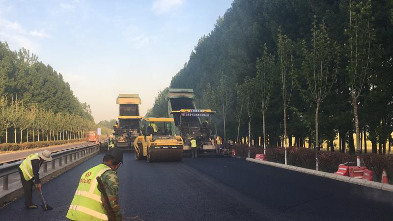 G206中修工程瀝青上面層首次攤鋪順利進(jìn)行