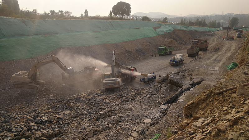 安全方面,項目部牢固樹立“確保不出安全事故,確保不因環(huán)保問題停工”的底線思維。在項目保證質量、進度的前提下,項目部堅持貫徹公司“安全第一、預防為主、綜合治理、全員參與”的安全生產方針,從管理源頭抓起,立足施工一線作業(yè)人員,嚴格落實安全技術交底。結合施工現(xiàn)場會,將安全生產例會常態(tài)化。全員落實“一崗雙責”,層層簽訂安全生產責任書。加大安全環(huán)保投入力度,根據(jù)現(xiàn)場土石方施工特點項目部集中采購了40臺環(huán)保霧炮設備,從而確保路塹開挖和路基填筑工點嚴格落實濕法作業(yè)。