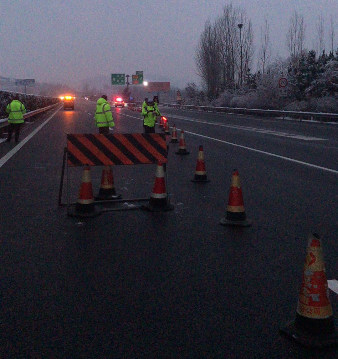 當晚21時天空中開始飄起了雪花,21:15時分別在張家坡收費站和魯村收費站的跟車員黃衍剛、陳仁明接到命令開始按原定計劃撒布融雪劑。23:30分,各自路段融雪劑撒布完成。26日5:50,根據(jù)通知要求,以橋面為主繼續(xù)撒布融雪劑,并擺放安全錐配合高速交警疏導、分流過往車輛。