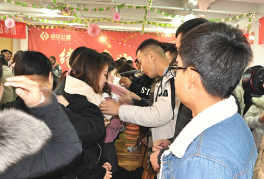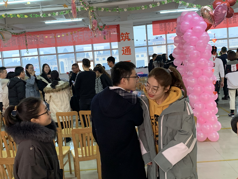 下午13:00過后,小姑娘們陸續(xù)到場(chǎng),小伙子們有忙著在寒風(fēng)中殷勤迎賓的,有在會(huì)場(chǎng)給姑娘們拍照留念的,有忙活著端茶遞糖的,還有幾個(gè)看傻了眼的,說話聲、歡笑聲不絕于耳,整個(gè)會(huì)場(chǎng)瞬間燃了起來。13:30分,活動(dòng)準(zhǔn)點(diǎn)開始,西南分公司的王琨發(fā)來書信分享了他通過聯(lián)誼會(huì)締結(jié)良緣的喜悅,工程管理部李乾親自到現(xiàn)場(chǎng)傳授收獲愛情的經(jīng)驗(yàn),氣氛也隨著他們的分享逐漸親切起來,順延著這份美好的祝福,男孩子們?yōu)樵趫?chǎng)的所有女生圍上了他們準(zhǔn)備的毛絨圍脖,系住這份溫暖,記住這份緣份。