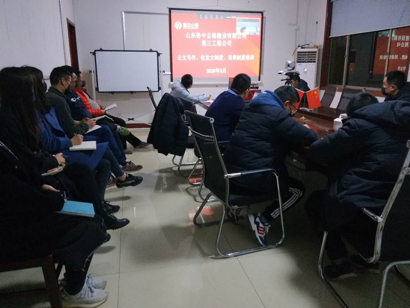2020年3月8日19時,第三工程公司辦公室、總工辦利用公司視頻會議系統(tǒng)在公司基地對公司所屬市政項目和淄川項目人員進行公文寫作、簽證計量、影像資料收集等項業(yè)務培訓。培訓分別就公文的格式、行文規(guī)則、簽發(fā)、辦理、收發(fā)文管理,撰文規(guī)律技巧、注意事項、容易出現(xiàn)的邏輯錯誤,典型病句,向參加學習的人員進行事例講解。強調公文寫作和小說、詩歌、劇本、散文等文學藝術作品的形象思維不同,公文屬于邏輯思維范疇,必須按照實用、嚴密、準確、簡練的文本要求,行文內容力求言簡意賅,簡明扼要,表述準確。