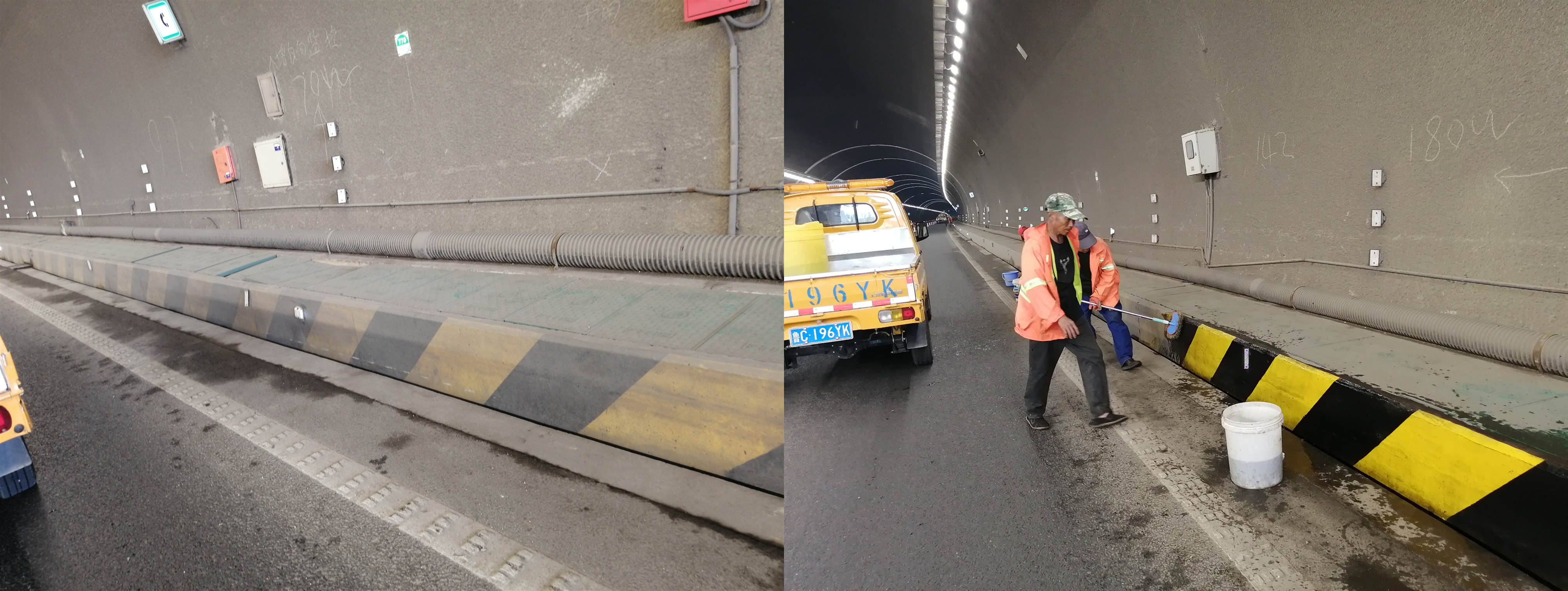 整理、擦拭、清理隧道口的防撞桶及散落的石子碎料