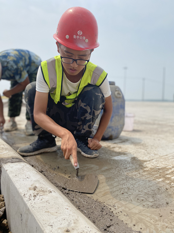 身為公路交通設(shè)施的施工員,我們工作的地方?jīng)]有空調(diào)與風(fēng)扇,只有那熾熱的太陽(yáng)照在身上的刺痛和偶爾吹來(lái)的自然風(fēng)帶給他們絲絲涼意;我們工作的地方?jīng)]有繁華與嘈雜,只有鋼筋叢林和模板、混凝土的世界,“叮叮鐺鐺......”,我們湊響青春之歌!