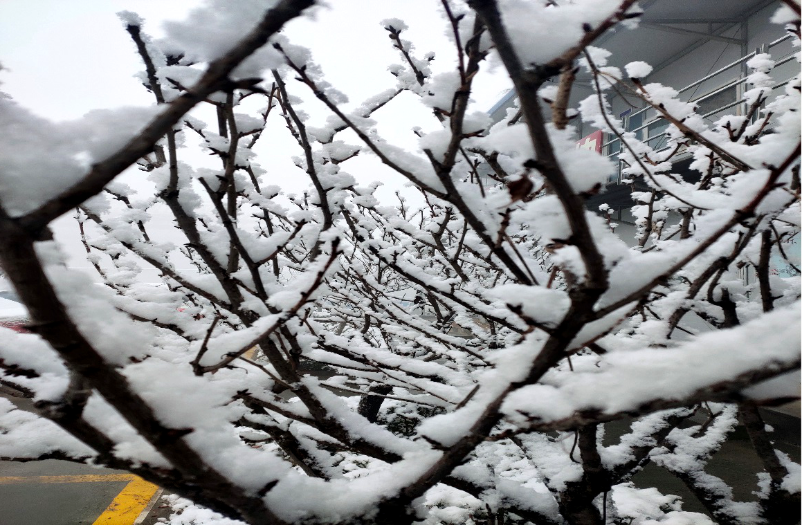 家鄉(xiāng)的雪總是融化的特別快,一上午地上就都是積水了,有的雪薄的地方就會直接干掉。好像沒下過雪一樣。只有樹上還會留有一點點積雪。這時的雪不像之前那么柔軟了,顏色也會從潔白變成半透明狀,用手抓積雪時,瞬間積雪就會融化成水從手里流出來。
