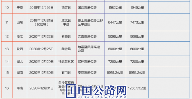 其他“縣縣通高速”的13個省份中,東部地區(qū)占7席(江蘇、浙江、福建、廣東、山東、遼寧、海南),中部地區(qū)占3席(湖南、湖北、江西),西部地區(qū)占3席(貴州、寧夏、陜西)。