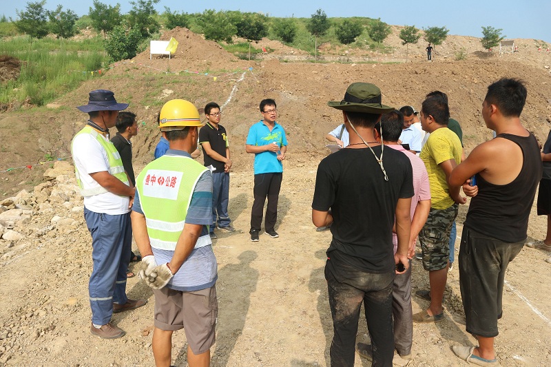 2016年8月12日星期五上午8點(diǎn),S102濟(jì)青線淄川段二工區(qū)強(qiáng)夯現(xiàn)場,召開現(xiàn)場技術(shù)安全交底會(huì),隨后展開強(qiáng)夯施工。