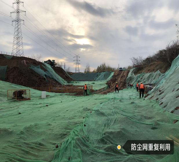 工程進展初期,各個工作面裸土覆蓋成為落實環(huán)保工作的一項重要措施。“用量大”、“易損壞”成了防塵網(wǎng)的兩大特點,針對此特點,落實節(jié)能增效的理念,防塵網(wǎng)必須做好循環(huán)利用、將損壞程度降低到最小化。機械在進入已經(jīng)覆蓋防塵網(wǎng)的工作面工作時,提前將防塵網(wǎng)卷起集中放到一側(cè);工作面上不再使用的閑置防塵網(wǎng)集中收集、集中存放,以備其他工作面使用,做到循環(huán)利用;嚴令禁止各種機械、車輛碾壓蓋有防塵網(wǎng)的工作面,降低防塵網(wǎng)的損壞,從而降低成本。