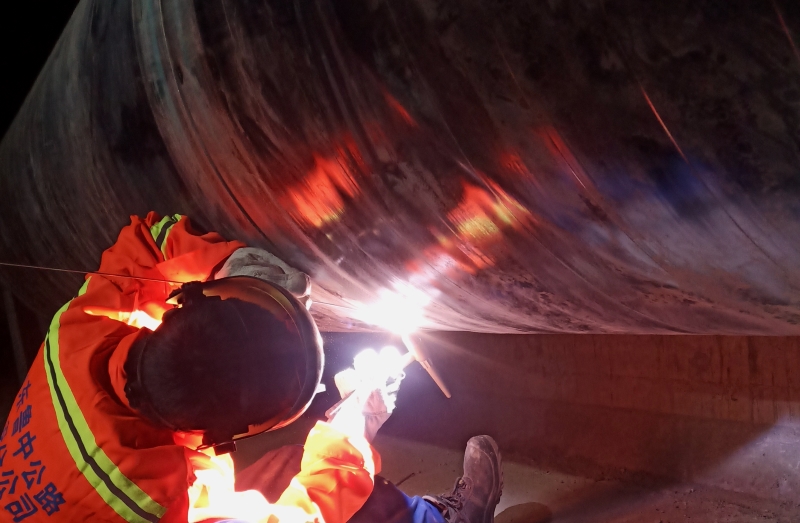 管廊內(nèi)魯中公路展開焊接競賽,焊花飛濺,焊縫飽滿均勻
