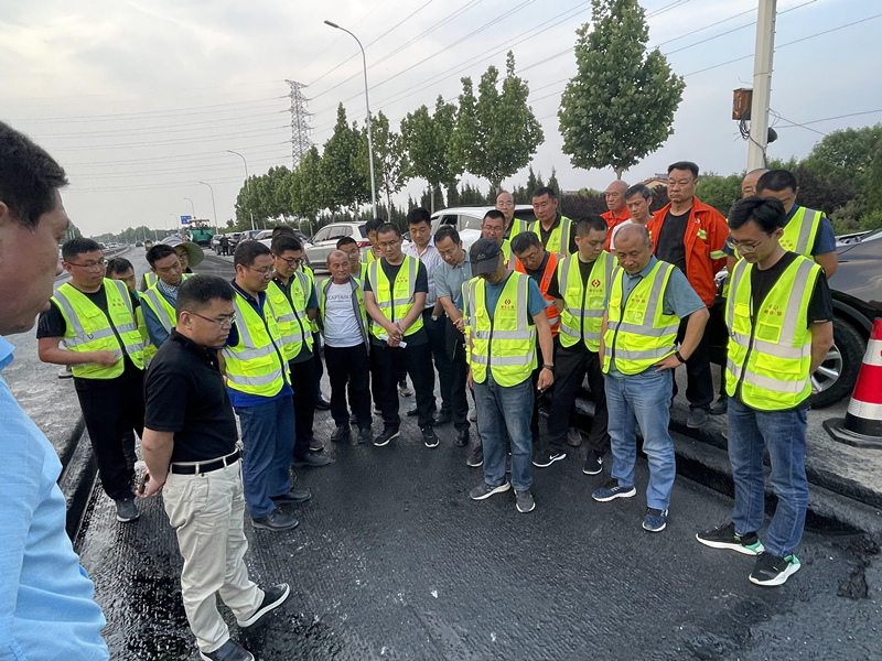 在現(xiàn)場會上,呂總針對當(dāng)前項(xiàng)目施工中的重難點(diǎn)問題,同現(xiàn)場施工人員逐一進(jìn)行了溝通交流,對路面銑刨,封層清掃、灑布,坑槽病害處理,瀝青攤鋪平整度、壓實(shí)度,橋梁伸縮縫施工等關(guān)鍵工序進(jìn)行了技術(shù)交底,提出具體工作要求。勉勵大家必須盡快抓住關(guān)鍵矛盾,聚焦管理重點(diǎn),有的放矢的做好項(xiàng)目管理和工作落實(shí)。
