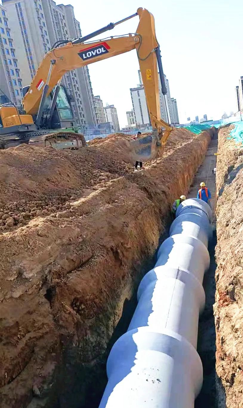 施工過程中,由于路面范圍內(nèi)高壓線塔桿林立,地上障礙物較多,地下管線復(fù)雜且權(quán)屬單位不明,為施工帶來很大困擾。項(xiàng)目部不等不靠,對已有工作面的地方進(jìn)行灰土施工,并積極與建設(shè)單位對接,提交相關(guān)資料。在管網(wǎng)施工中,考工路項(xiàng)目部一方面了解錯(cuò)綜復(fù)雜的地下管網(wǎng)走向,另一方面秉承安全、環(huán)保、高效、高質(zhì)的原則,采取封閉、勘察、開挖、覆蓋、安裝、回填、逐層夯實(shí)依次推進(jìn)的節(jié)奏展開地下管網(wǎng)施工,成功克服管線作業(yè)困難,保障項(xiàng)目施工穩(wěn)步推進(jìn)。