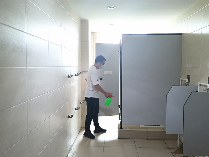 五公司對衛(wèi)生間等生活區(qū)進行防疫消毒