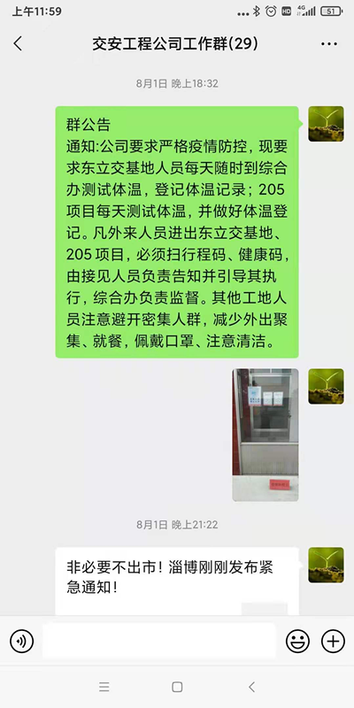 交安公司利用工作群宣貫疫情防控措施