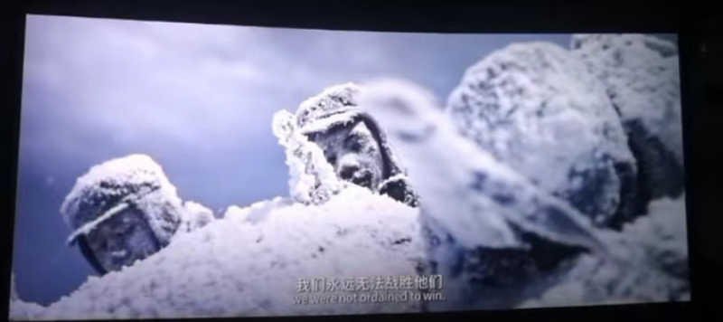影片開始就被“雄赳赳,氣昂昂,跨過鴨綠江……”的歌聲環(huán)繞,迅速把我們帶入了觀看狀態(tài),整部劇更是讓在場觀看的人唏噓不已、處處揪心,仿佛自己身在其中,當(dāng)看到戰(zhàn)場上敵人有的是新式武器,我們用的是步槍、是自身的肉身;敵人吃的是大魚大肉,我們吃的是凍土豆時,更是恨得牙癢。