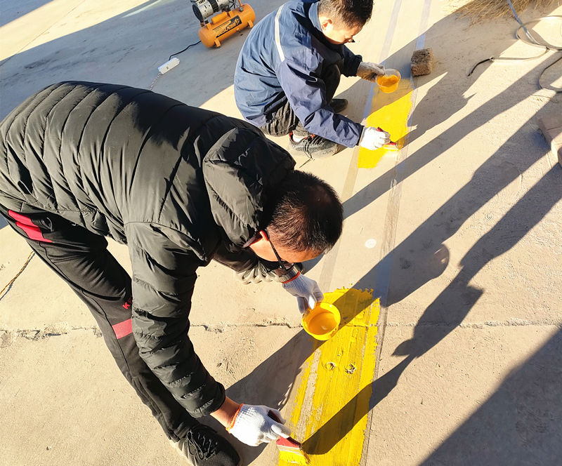 當天的施工中,風(fēng)大且天氣較為寒冷,但施工團隊卻配合默契,干凈利落的把標線畫的整整齊齊,并在施工完成后對場地的垃圾做到及時清理。