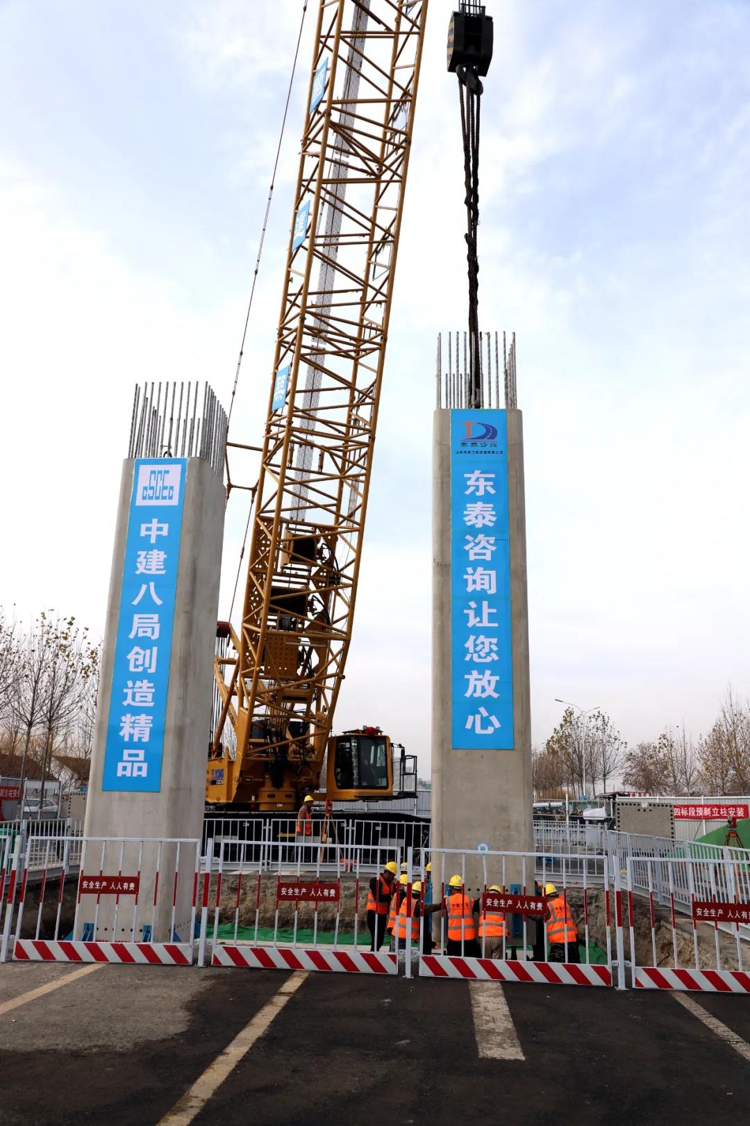 山東東泰工程咨詢有限公司寶山路項目總監(jiān)理工程師張鵬介紹說,項目自開工建設(shè)以來,東泰咨詢公司總監(jiān)辦堅持高起點、高標(biāo)準(zhǔn)、高質(zhì)量、高要求,從質(zhì)量控制、技術(shù)方案、工藝流程、安全管理等多方面加強與施工單位的交流,充分發(fā)揮“咨詢式、服務(wù)型”監(jiān)理優(yōu)勢,圍繞“落實五化要求、弘揚工匠精神、打造品質(zhì)工程”目標(biāo),努力做到事前監(jiān)理、事中和事后控制,從源頭管控工程質(zhì)量,堅持全程旁站、層層把控、現(xiàn)場指導(dǎo),積極協(xié)助施工單位“出點子、想辦法、拿實招”,確保了首根預(yù)制立柱吊裝的順利完成,科學(xué)有序加快推進項目建設(shè),為后續(xù)工程建設(shè)積累了可復(fù)制、可推廣的經(jīng)驗,也為淄博市城市快速路網(wǎng)建設(shè)駛?cè)?ldquo;快車道”,按下“加速鍵”貢獻智慧和力量。
