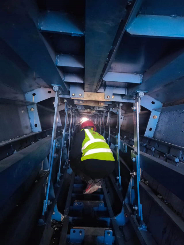 質(zhì)檢人員內(nèi)膜內(nèi)敲擊檢測(cè)砼澆筑質(zhì)量