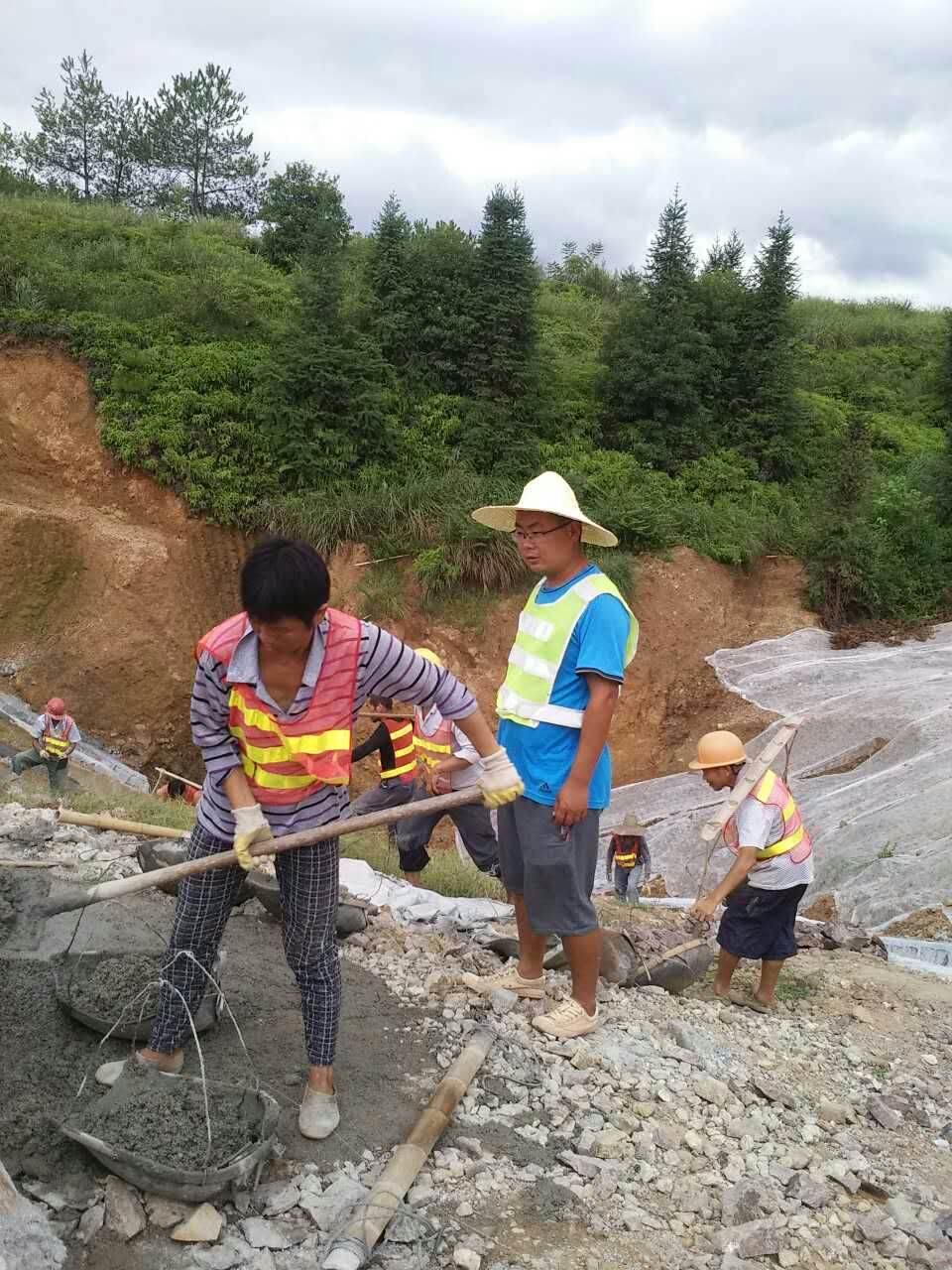 基礎(chǔ)分公司江西項目部工區(qū)質(zhì)檢負(fù)責(zé)人張學(xué)慶檢查下邊坡人字骨架砌筑