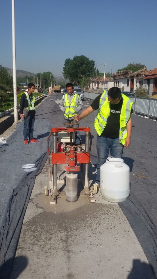 質(zhì)檢員在進行水泥穩(wěn)定碎石基層取芯