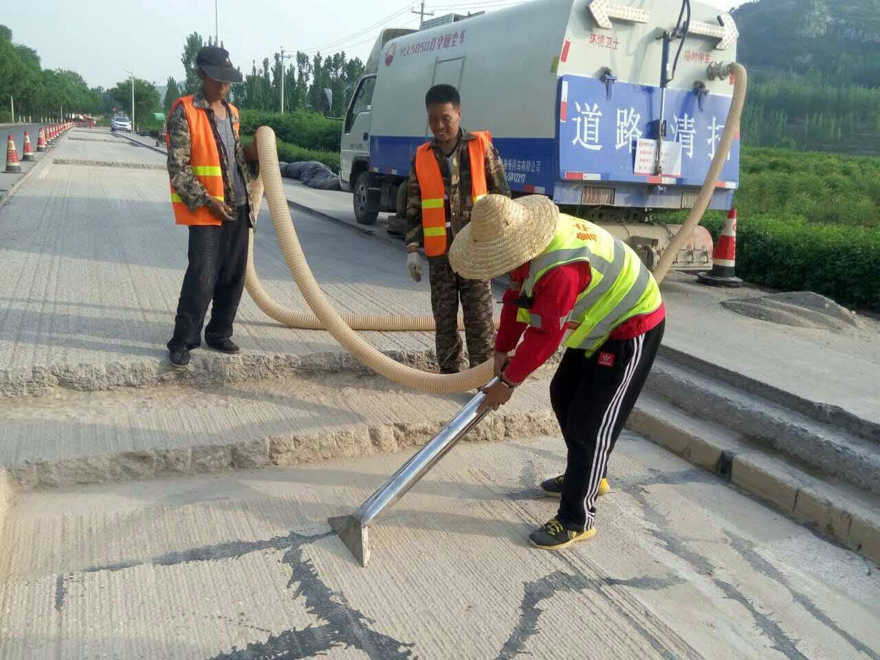 銑刨完畢后,人工配合清掃機進行路面清掃。