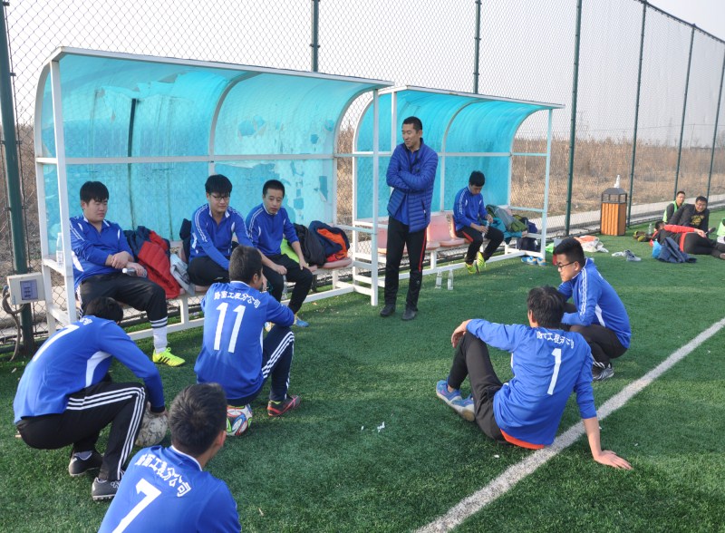 路面工程分公司代表隊(duì)利用中場(chǎng)休息時(shí)間安排下半場(chǎng)戰(zhàn)術(shù)